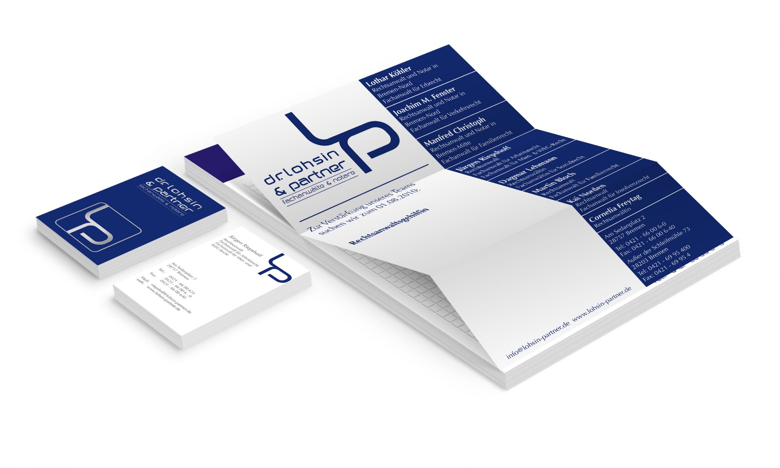 Bei der Visitenkarte, dem Briefpapier und der weiteren allgemeinen Geschäftsausstattung Ihres Unternehmens verhält es sich ähnlich. Aufgabe ist es, die zuvor angegeben Kriterien Ihres Design ebenfalls darin zu integrieren. Kreative Fische ist Ihnen bei der Realisierung gerne behilflich.